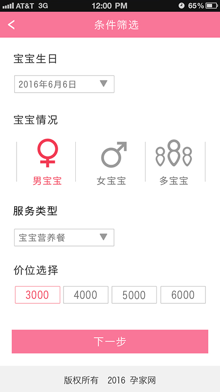 孕家条件筛选页面